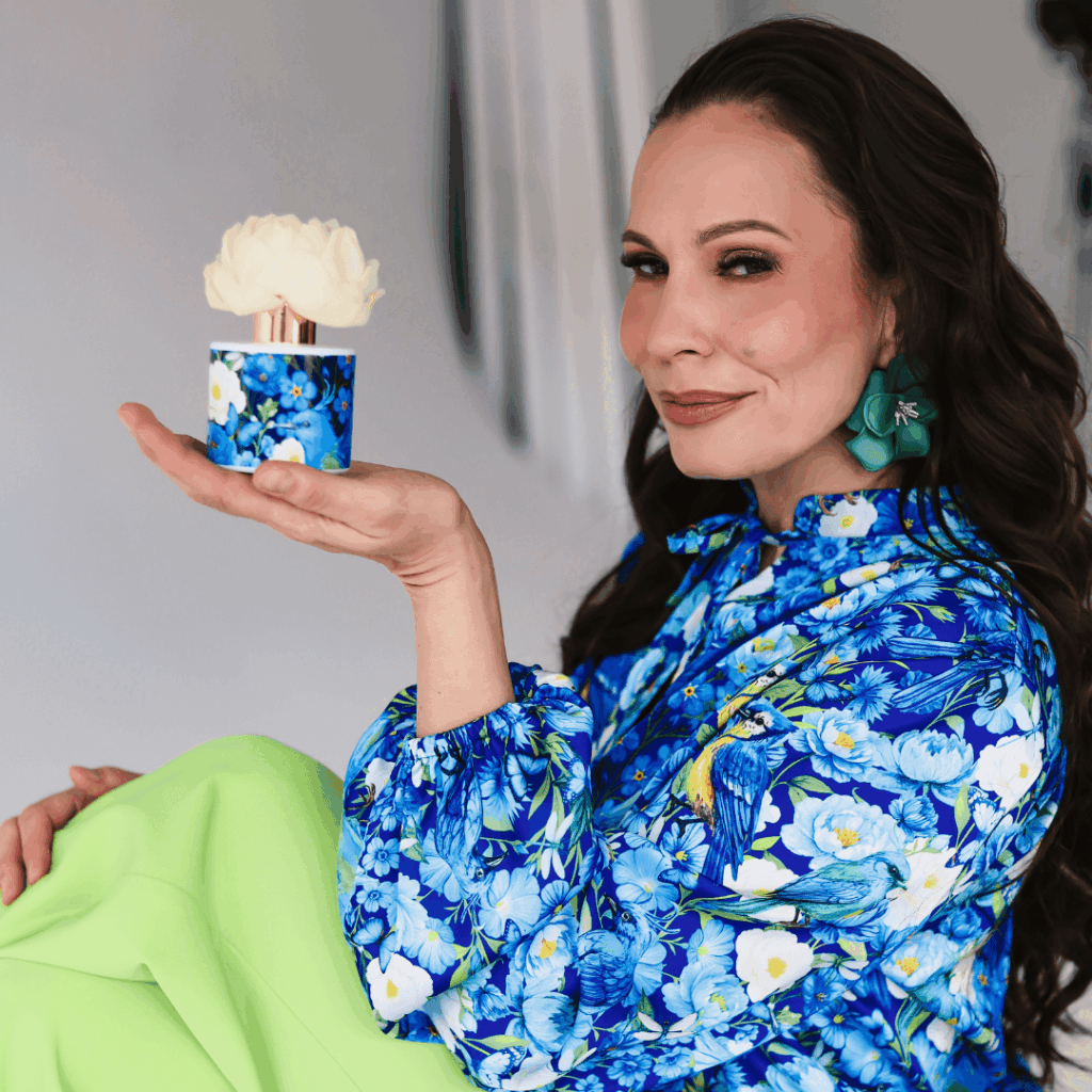 A kollekció különleges darabja a virágdekoros diffúzor, amely egy elegáns lakásillatosító és dekoráció egyben.